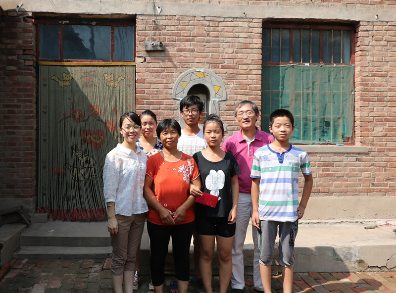 在每次的走访后,张建国为贫困生家庭送上学校及学院的慰问金后,并合影留念。