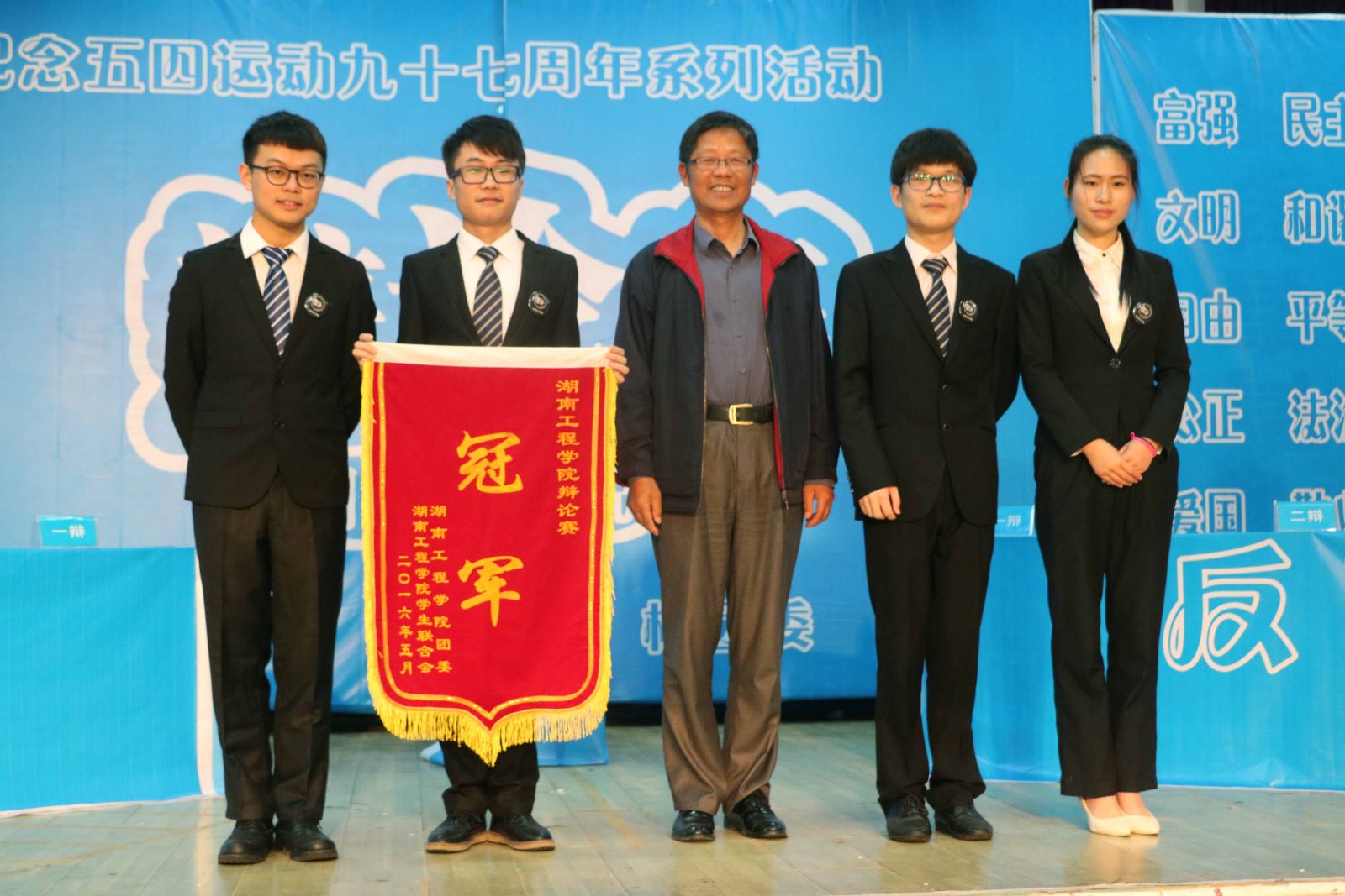 党委书记谢伯端老师、湘潭市口才协会副会长彭瑛老师两位老师以及来自湖南师范大学的时明学长、湖南中医药大学的申婷学姐、湘潭大学的黄宝莉学姐共同担任此次辩论赛的评委。校园主持人大赛季军田锋担任本次辩论赛主席。