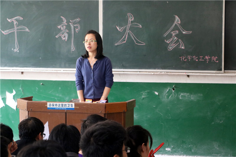 4月28日中午12点40,化学化工学院于四教109召开了全院班长、团支部大会。学办老师李芳郴、刘思博、易苏出席。会议由李芳郴老师主持。