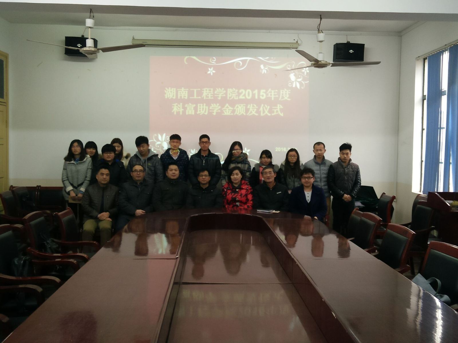 随后张建国宣读了学院2015年科富助学金表彰结果,与会嘉宾和领导为获奖的12名学生颁发了助学金,共计2万元。颁奖会后,袁建新总经理、学院领导与获奖同学合影留念。