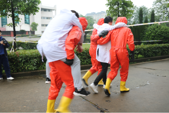 为积极应对严重的实验室安全突发事件和危险化学品可能发生的危害,有序组织开展抢救工作,最大限度减少人员伤亡和财产损失,及时控制事故扩大。在杨剑瑜副校长的组织下,学校资产处、保卫处、后勤处、宣传部和化学化工学院相互配合,5月7日下午,在化学化工学院实验楼开展了实验室突发事件应急演练,上演了“穿越火线”的惊心动魄一幕。