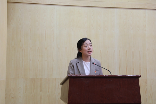 柳芊在发言中回顾了学院2019年的团学工作成绩,并以疫情期间学院青年团员战“疫”事迹,激励所有学生传承五四精神,勇担时代责任。