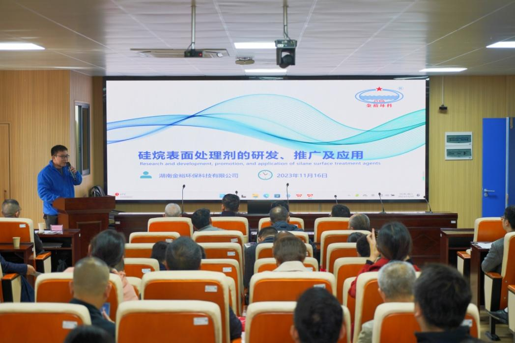 吴锋景教授作了《金属表面环保型硅烷膜的制备及应用性能研究》学术报告,湖南金裕环保科技有限公司副总经理桂林作《硅烷表面处理剂的研究、推广及应用》学术报告,常德华烨表面技术有限责任公司总经理周军作《镍基合金镀层在金属表面工程中的应用》学术报告,湖南省常德表面处理产业园董事长王建忠作《建设绿色电镀车间,助力园区绿色发展》学术报告,湖南德莱恩新材料科技有限公司陈学军总经理作《无渣磷化应用与推广》学术报告。