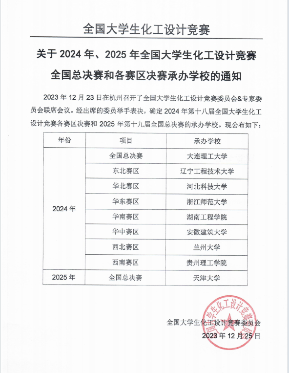 今日,全国大学生化工设计竞赛委员会发布《关于2024年、2025年全国大学生化工设计竞赛全国总决赛和各赛区决赛承办学校的通知》,通知中明确2023年12月23日在杭州召开的全国大学生化工设计竞赛委员会&专家委员会联席会议上,经出席的委员举手表决,确定由麻豆a片
