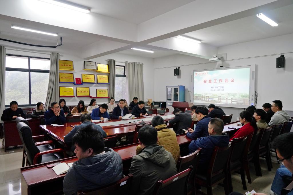 在材化楼A304召开安全工作会议,院领导、教研室主任,实验室老师、班主任和全体辅导员参加,会议由院党委书记徐粤宇主持。