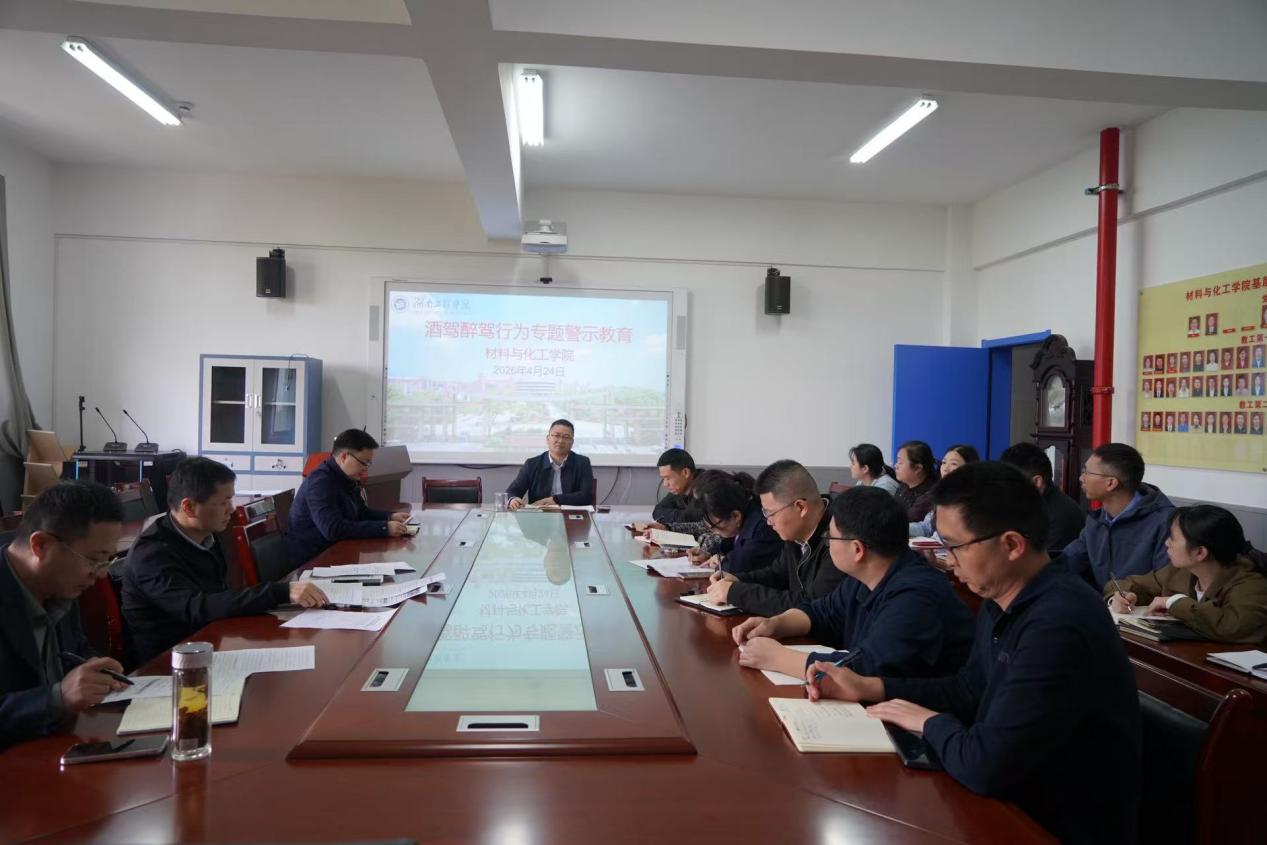 在材化楼304召开酒驾醉驾专题警示教育会。学院党委班子成员、综合办公室、各教研室负责人及学办全体辅导员参会,会议由学院党委书记徐粤宇主持。