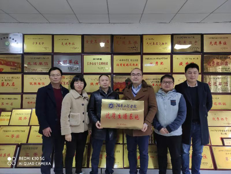 党委副书记陈镇,辅导员易苏、陶庆忠一行来到宁乡五中进行“优质生源基地”授牌暨基地共建签约仪式,宁乡五中支部书记、校长姜义军,副校长万敏及相关职能部门和班主任共同出席仪式。