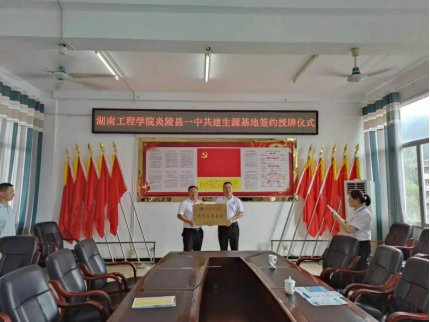 院长邓继勇带领院办主任黄赛金、学办老师刘思博一行赴炎陵县第一中学举行优质生源基地授牌仪式。炎陵县第一中学党委书记曹燕,校长王忠诚,副校长李芳勤,部分行政人员及高三班主任参会。