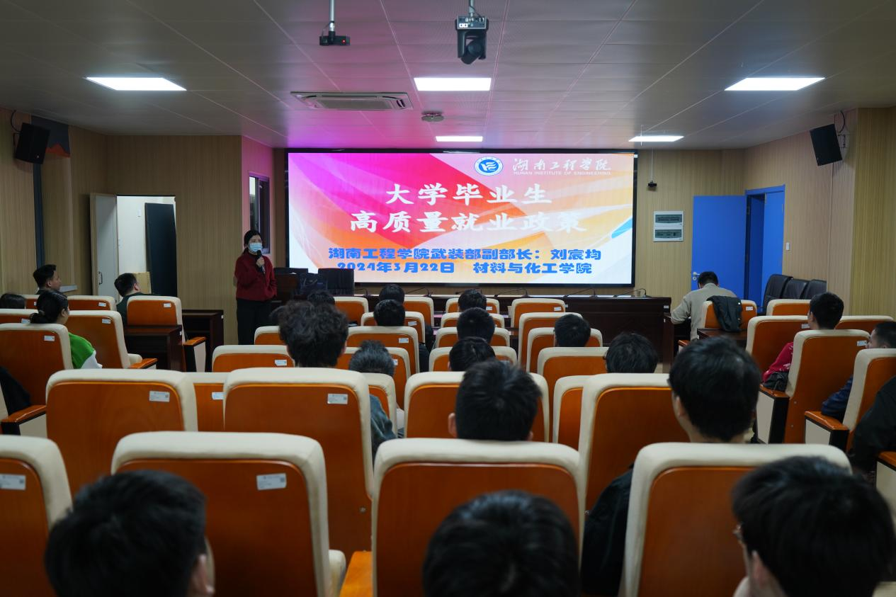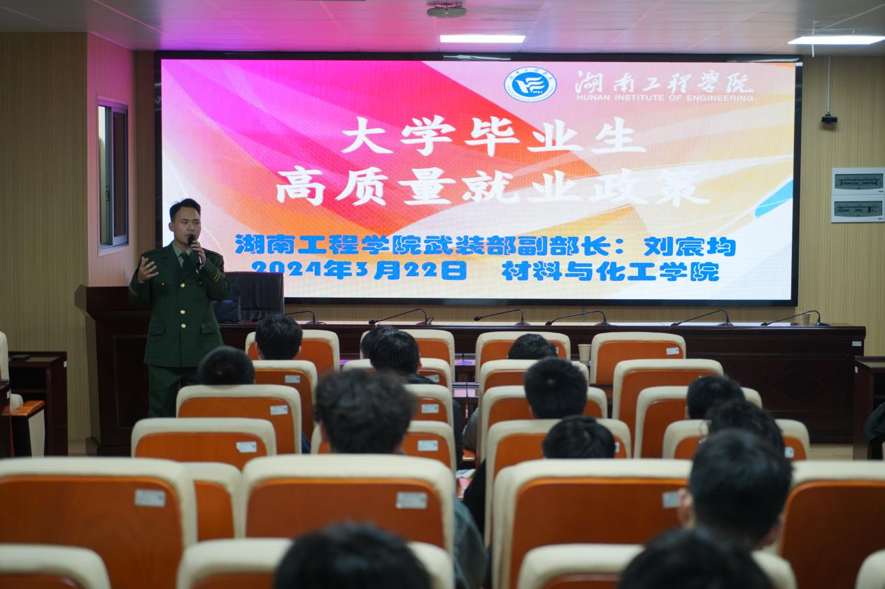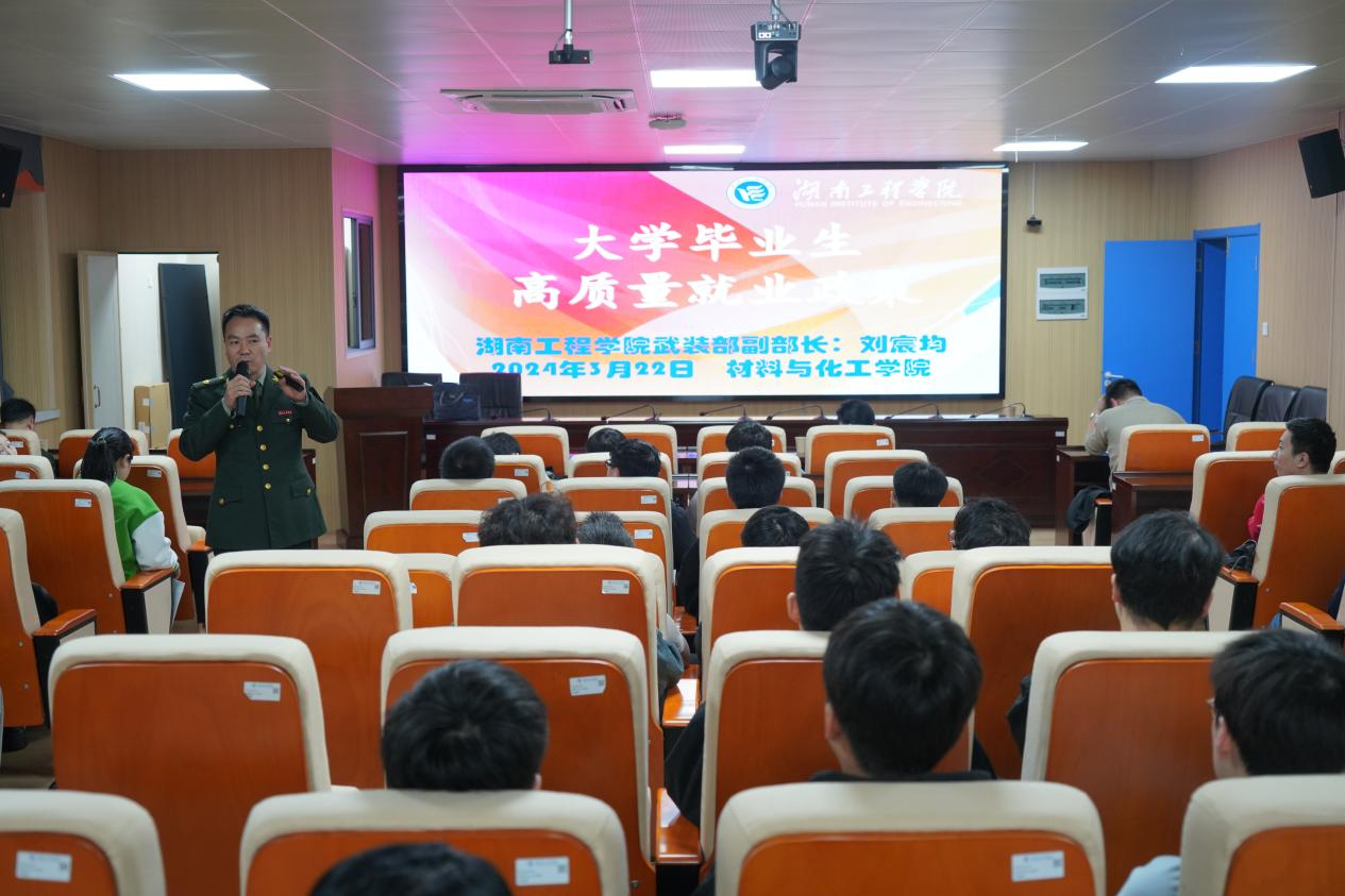 人民武装部副部长刘宸均在材化楼A-301开展主题为“大学毕业生高质量就业政策”的主题征兵宣讲会。学院征兵专干陶庆忠、麻豆a片