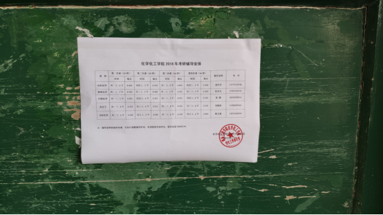 化工院教学楼公示的考研光荣榜