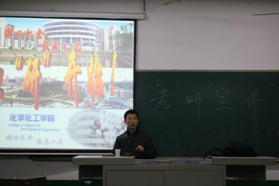 2017年12月5日晚上7点,化学化工学院于四教402召开生物工程考研宣讲会,主讲人为张儒博士,生物工程专业15级准备考研的学生参加了本次宣讲会。