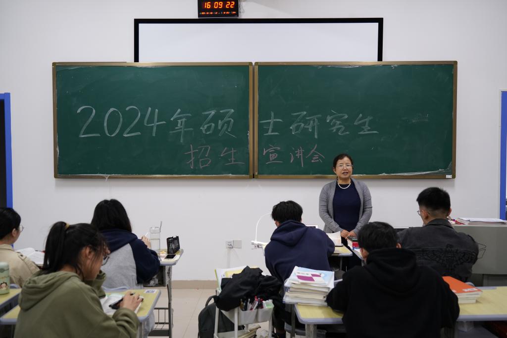 的研究生招生政策。她向同学们介绍了学校的研究生培养特色、优势学科、师资力量,详细解读了报考本校研究生的条件、招生专业、招生人数等信息。针对同学们如何选择适合自己的专业、如何准备考研资料等问题,陈建芳为同学们提供了一些建议,帮助同学们更好地了解考研流程。她鼓励同学们要有信心,努力学习,争取考上理想的研究生院校。