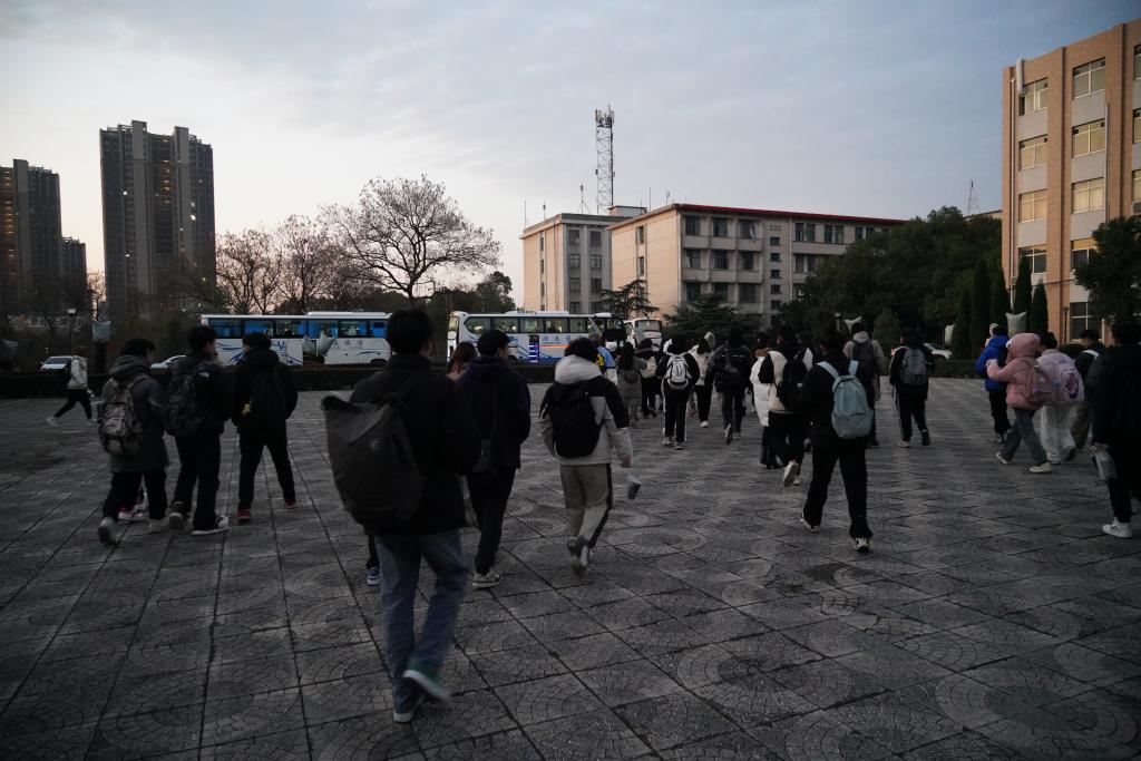 12月23日清晨6点40分,东方破晓,大地寒霜。主校区(北)红楼前,三辆开满暖气的爱心送考大巴已停靠在预定位置。学院副书记罗荃、辅导员王祥若和学生志愿者早早等候在这里,随着乘车的考研学子陆续到达,现场工作人员开始忙碌起来。经过细心组织信息核对、提醒检查考试物品和引导乘车,150余名追梦少年根据学院为他们精心定制的送考路线奔赴湘潭市内五个考点,迎接他们备战已久的2024年全国硕士研究生招生考试。