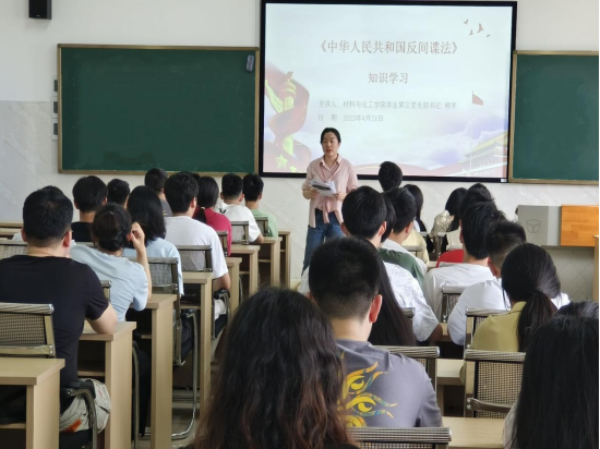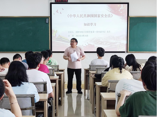 学生党支部于新化工楼602开展保密主题党课学习,并观看 2023 年保密宣传片和保密警示教育片。此次学习,由学生第一、二、三支部书记易苏、柳芊和王祥若分别讲解《中华人民共和国国家安全法》,《中华人民共和国反间谍法》、《中华人民共和国保守国家保密法》、保密风险隐患提示和有关案例通报等相关文件,共计100余名学生党员参加。
