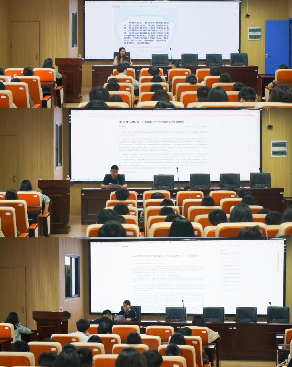 随后,全体党员集中观看了2024年保密公益宣传片《一秒钟》,各支部的学生党员代表分别围绕政治、廉洁、组织三个方面进行交流发言。他们表示,通过对总体国家安全观、党纪党规、保密工作和新质生产力发展力的学习,真正明确了学生党员的责任和使命。