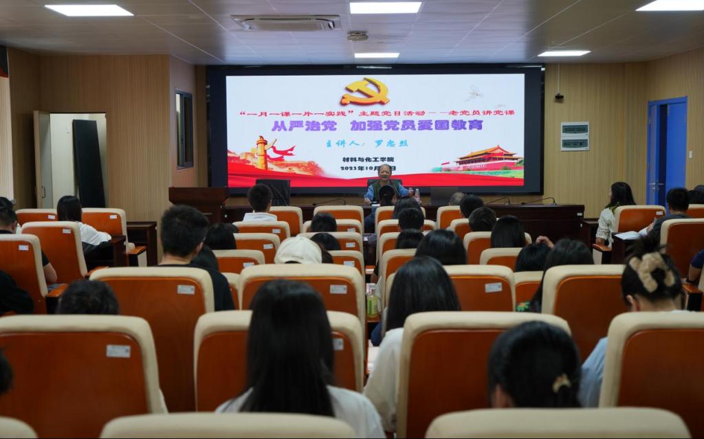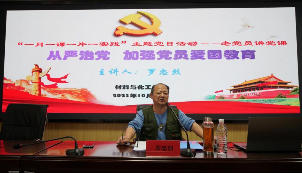 原纪委书记、现任校关工委主任、“光荣在党50年”老党员罗忠烈同志在材化楼A301给全院师生党员上了一堂精彩生动的党课,学院100余名师生党员参加。活动由学院党委书记严明主持。