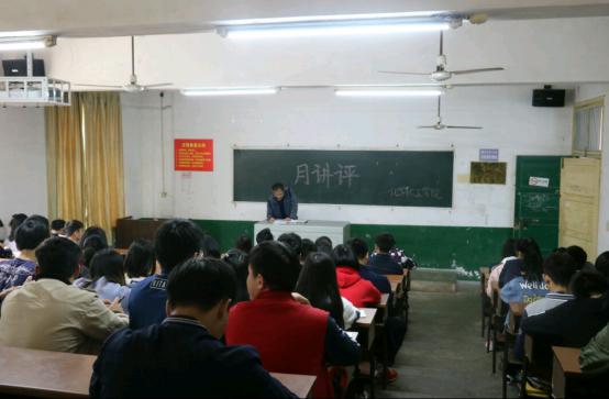 党总支副书记张建国作为主讲人,列出了本次讲评的主要内容。首先,他强调了校园安全的重要性,并提出了校园内禁止摩托车通行的方案,即从下学期开始,学校将全面禁止电动车、摩托车的通行。同时他也向同学们讲述了此举的主要目的:以建设平安校园为载体,维护校园安全。随后,张建国还指出要做好湖南名校综合评教的相关要求,希望学生在接到电话时态度要和气耐心,要正确对待评教,学校的荣誉与学生息息相关。紧接着,他重点强调了学生兵役登记的要求,即以班级为单位,所有男生需登记电子档,如有特殊情况,也可让亲戚或老师代为登记。最后,他指出在五一期间,希望各班干部能多多关注本班同学的情绪,情绪波动较大时应及时联系学院老师。