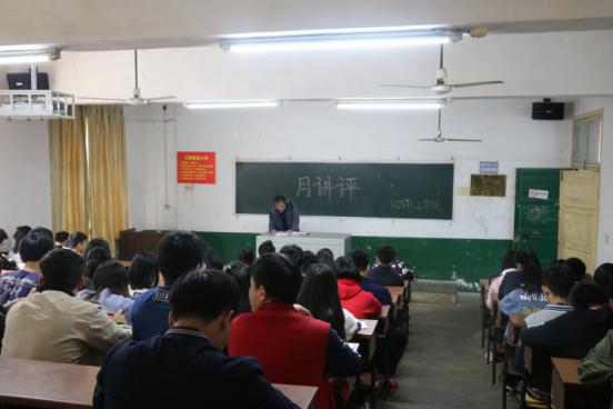 2017年4月26日下午4点,化学化工学院于四教102开展月讲评活动,党总支副书记张建国担任此次活动的主讲,学办老师易苏、李娥君以及全院干部参加了本次讲评活动。