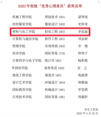 申报的《“疫”过天晴--致敬疫情中可爱的人们》项目获立项。在2020年学校“优秀心理委员”评选工作中,麻豆a片