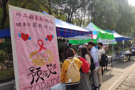 团学会在校园多处设点进行防艾教育宣传活动。活动期间,同学们不仅深入了解了预防艾滋的基本知识,还表达了对艾滋病病人的鼓励和祝愿。