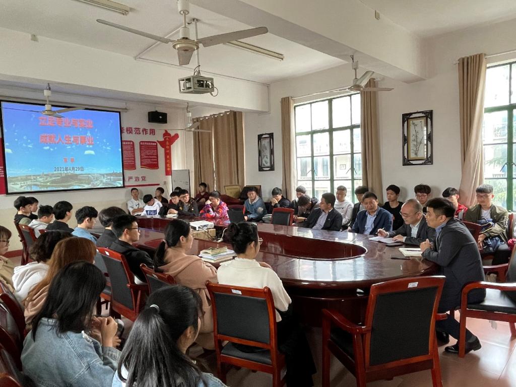 2005届优秀校友、四川义结科技有限责任公司总经理覃攀博士应邀来校,在第四教学楼会议室为麻豆a片
