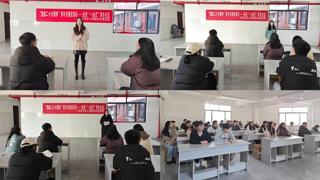“党的二十大精神”青年先锋宣讲队在滨江校区“一站式”学生社区开展党史宣讲活动。党委副书记罗荃、学生公寓党支部书记李娥君、学生第二党支部书记王祥若和全体学生党员参加宣讲活动。