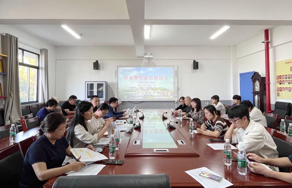在材化楼A-304会议室召开学业帮扶家长座谈会。学院院长邓继勇,党委书记严明、副书记罗荃,副院长陈建芳、张儒出席会议,学院教务秘书、各年级辅导员及学业红色预警学生、家长及班主任参加会议,会议由罗荃主持。