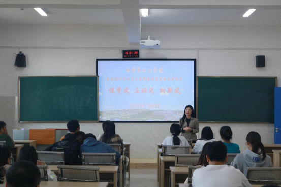 在新化工楼606室举行了学风建设动员大会暨建设月活动启动仪式,大会以“促学风 正班风 树新风”为主题。学院党委副书记罗荃,2020-2022级副班长及部分学生干部参加,学院辅导员李娥君主持。