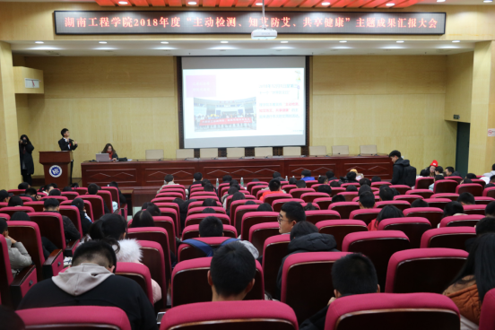 于图书馆二报告厅举行了2018年度“主动检测 知艾防艾 共享健康”主题活动汇报会。化学化工学院团总支副书记郭易和学生会副主席陶文杰作为嘉宾出席了此次会议,丁晶作为化学化工学院的代表,向全校汇报麻豆a片