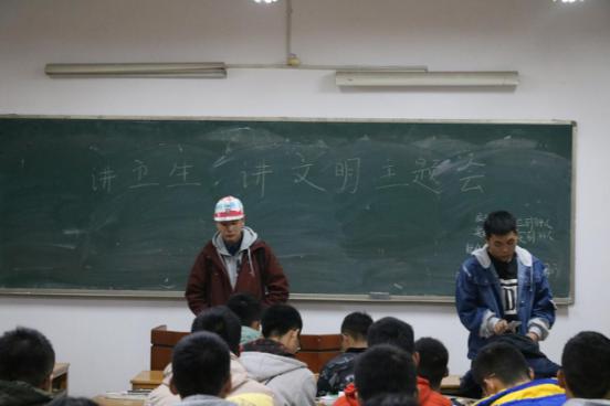 学生思想道德建设,净化校园环境,建设文明校园。11月19日,化学化工学院组织大一大二各班于红楼开展了以“讲文明、树新风、创美丽新校园”为主题、以“告别行动垃圾、思想垃圾”为主旨的班会活动。