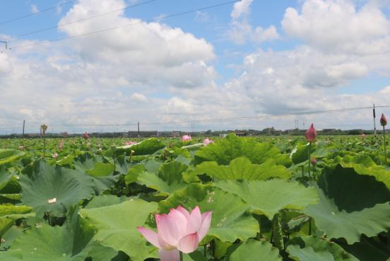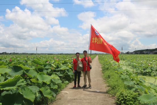 志愿者队在镇人大副主席张石强的引领下,志愿队寻访了湘莲特色基地。在前往特色基地的途中,均能看到道路两旁有出售本地西瓜的摊点。据了解,本地西瓜销量极高旺季时可达每日万斤,西瓜种植极大的解决了农户解生计问题。随后,志愿队来到了千亩莲田的所在地。正值盛夏,莲花盛开,不少人因湘莲的美景慕名至此。据了解,湘莲特色种植基地是当地经济的核心,它不仅推动了河口镇的旅游业发展,还引申出了诸多湘莲相关产业,极大的带动了当地的经济发展。