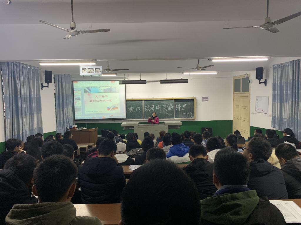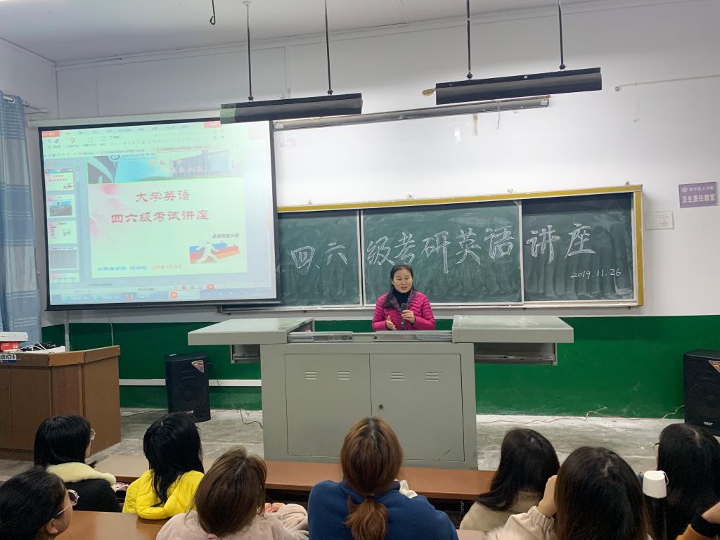邀请外国语学院教授刘向红在四教109举行四六级、考研英语指导专题讲座,学院100余名学生参加。