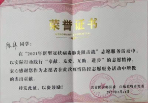 (陈洋同学疫情防控志愿服务证书)