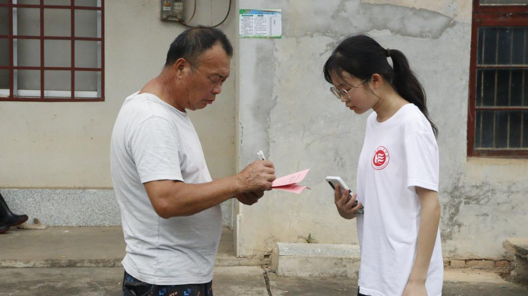 下午,实践团分成四个小组在银田村展开有关“垃圾分类”、“粮食安全”、“红色旅游”问卷调查活动。志愿者们拜访商户,寻找路人,上至70岁的老人,下至玩耍的孩童。即使是被采访者不识字,志愿者们也很有耐心的将调查内容讲述来给对方听。据统计,有效问卷共计117份。