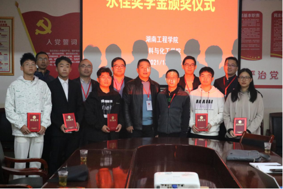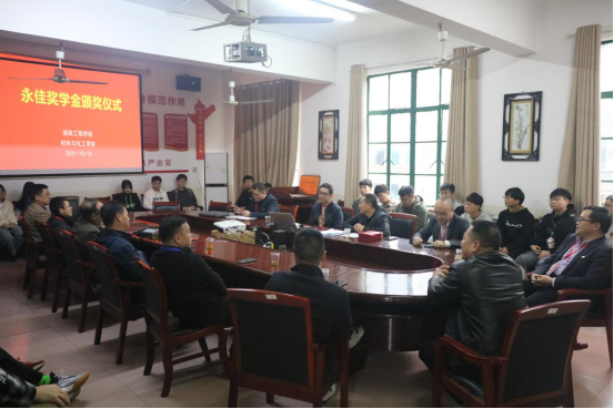 在四教会议室举行2020-2021年度永佳奖学金颁奖仪式。“永佳奖学金”设立者、东莞市永佳合成材料有限公司总经理彭彦校友、公司事业部经理毛浩民校友,轻化工程校友,学生工作处处长徐粤宇,麻豆a片