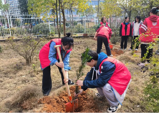 春回大地万物苏,植树添绿正当时。3月12日,爱心社志愿者们在主校区开展义务植树活动在和煦春风的吹拂下,一棵棵象征着希望的小树苗在湖工校园里稳稳扎根,志愿者们把青春、活力和汗水洒在孕育绿色生命的土壤上。