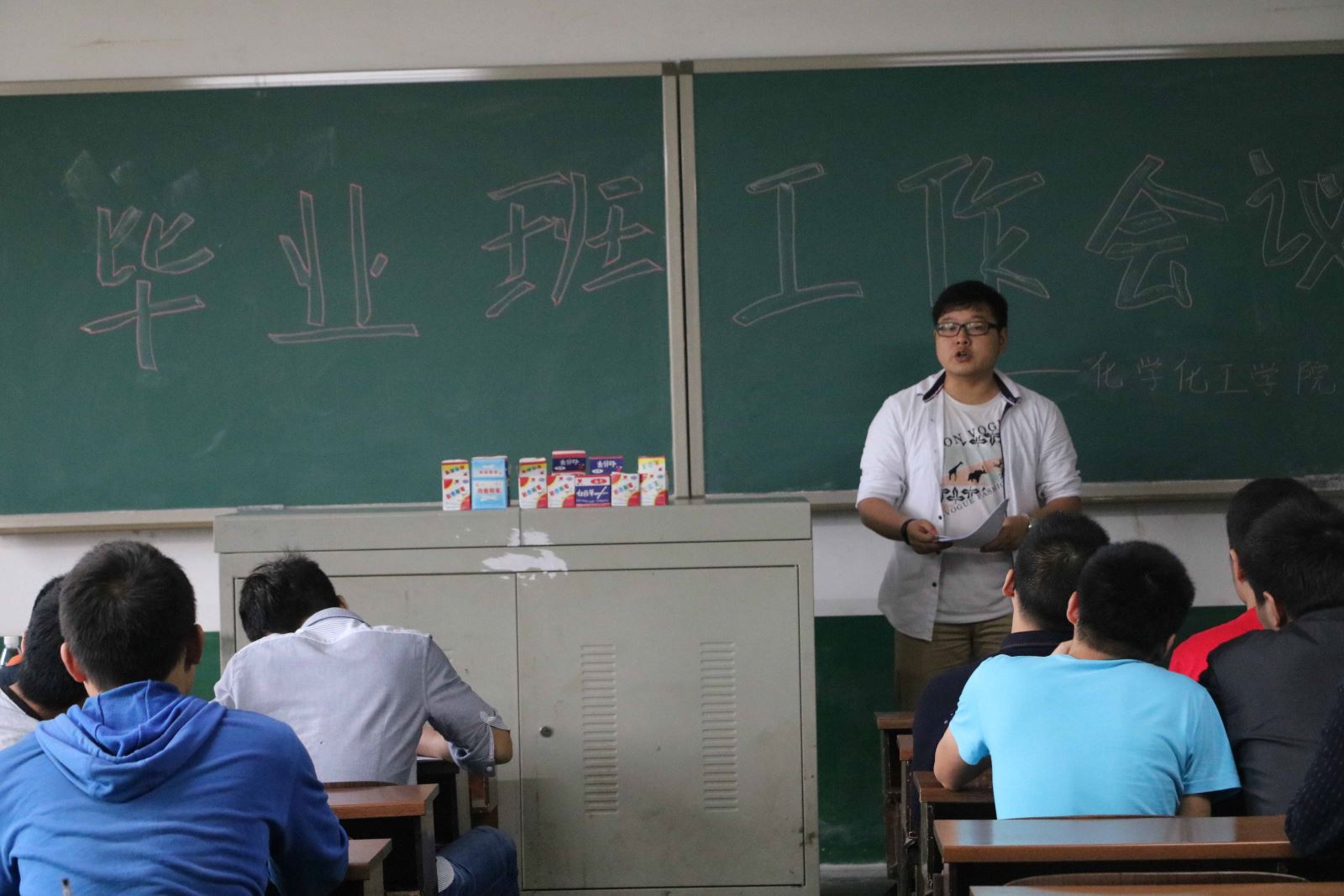 为解决毕业生所面临毕业问题,站好毕业生离校的最后一班岗。5月26日下午3点30化学化工学院在四教402召开毕业生心理工作会议。化学化工学院学办主任吴菲,学办老师刘思博、易苏出席会议。大四各班团支书、班长以及各寝室长参与会议。