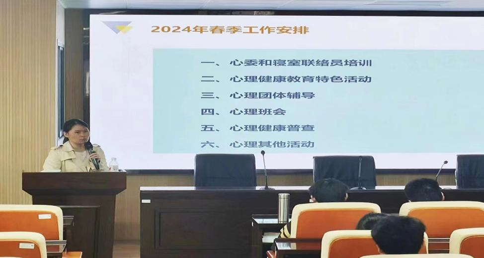 培训会上,黄玉娟回顾了2023年秋季学期的心理健康教育工作,对2024年春季学期的心理健康教育工作进行了安排,对班级心理委员工作进行了强调和培训。