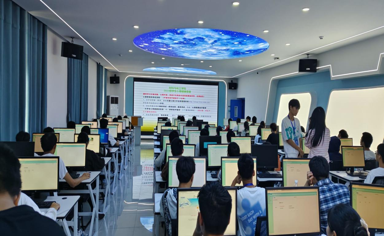 在材化楼A-601开展了2023级全院新生心理健康普查活动,活动由黄玉娟老师主持。