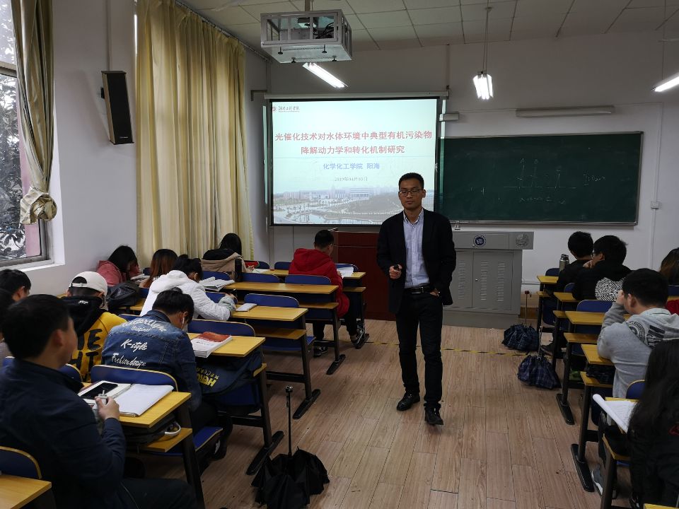 2019年4月3日,阳海博士在红楼202作了一场催化化学领域的学科前沿讲座,讲座主题为“光催化技术对水体环境中典型有机污染物降解动力及转化机制研究”,化工院化学工程与工艺、材料化学等相关专业70余名师生到场聆听。