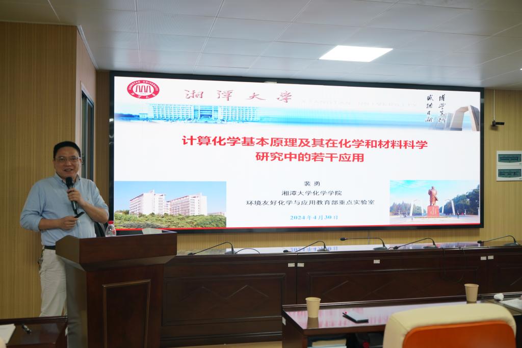 在材化楼A301会议室举办卓越大讲堂,湘潭大学两位杰出学者——裴勇教授和费俊杰教授,分别作了题为“计算化学基本原理和若干应用实例”和“碳基(光)电化学传感器的构建与应用”的专题学术讲座。讲座吸引了学院100余名师生参加,现场座无虚席。这场讲座不仅丰富了师生的学术视野,也为学院的学术交流增添了浓墨重彩的一笔。
