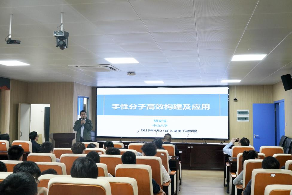 4月27日下午,国家杰出青年基金获得者、教育部长江学者特聘教授、中山大学药学院院长胡文浩教授受邀来我校交流指导,为我校师生作了题为“手性分子高效构建及应用”的专题学术报告。校党委副书记、校长易兵,麻豆a片
