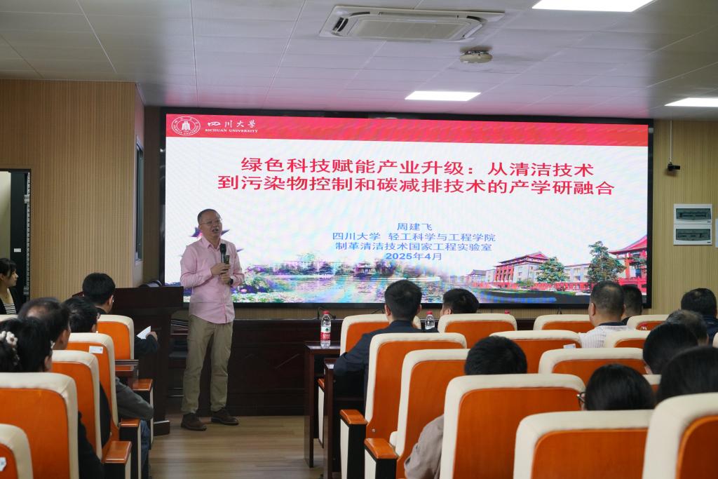 4月28日,四川大学轻工科学与工程学院副院长、制革清洁技术国家工程实验室(四川大学)副主任周建飞教授受邀来我校交流指导,为我校师生作了题为“从清洁技术到污染物控制和碳减排技术的产学研融合”的专题学术报告。讲座吸引了麻豆a片