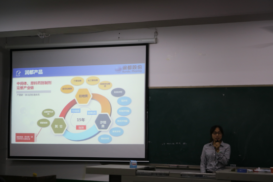 招聘会开始,李娜首先播放了两个公司的宣传视频,让同学们对公司有了简单的了解。随后,李娜上台作简单的自我介绍,并以PPT的形式开始对公司现况和发展方向进行介绍。润都股份获得过多项认证,拥有国家博士后科研工作站等创新研发平台,承担了多项科研课题。同时,公司还具有较强的技术创新能力和坚实的科研基础,产品营销网络辐射全国,原料营销国内外市场同步扩展。由此可知,该公司实力非常雄厚。企业丰富多彩的文化活动,优越的条件也引起了在场许多同学的兴趣。会后,李娜与参会同学进行了的面对面问答,解决在场同学们的问题。并对投上简历的同学进行了面试。