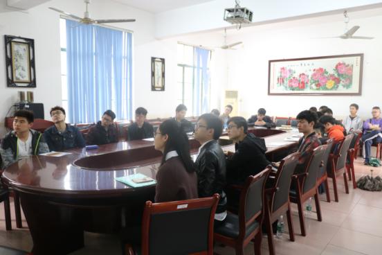 各专业部分大四学生及威迅公司招聘负责人参加会议,威迅公司人事部经理李晟担任主讲人。