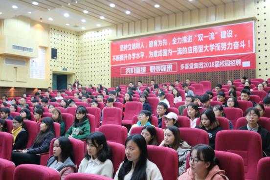2017年10月16日晚上7:00,多喜爱集团股份有限公司于麻豆a片 图书馆二报告厅举行2018年校园招聘宣讲会。多喜爱集团人力资源部副总监陈方卉、化学化工学院学办老师刘思博出席此次招聘会,陈方卉担任主讲人。此次招聘会主要面向轻化、纺织工程等多个专业的学生。