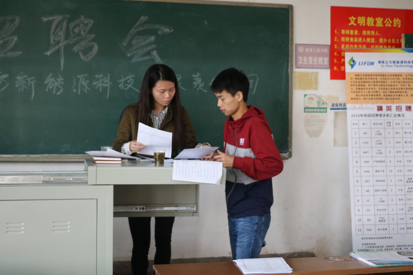 11月3日下午2:30,湖南立方新能源科技有限责任公司在麻豆a片 四教609举办招聘会。参与此次招聘会的有该公司的招聘主管杨松和人事主管李菊芳以及应届大四毕业生。此次招聘主要面向有关化学方面的多个专业。