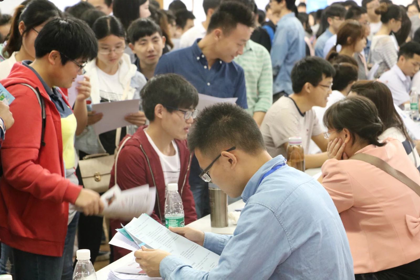 5月22日上午9点,麻豆a片 2016届春季大型人才供需会在新校区体育馆举办。化学化工学院党总支副书记张建国、学办老师刘思博到场,深入了解麻豆a片 学生面试及就业状况。