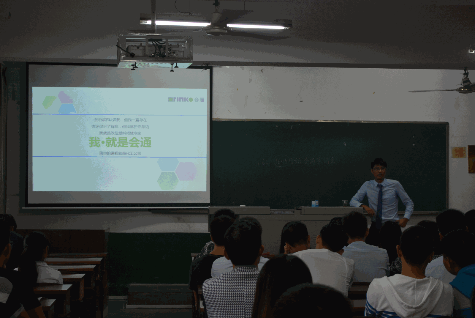 11月6日下午4点,会通材料集团在四教309举办了“会通材料集团专场人才招聘会”,人力资源经理宋文杰出席并主持本次的招聘会。会场座无虚席。