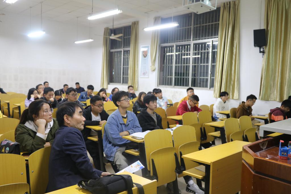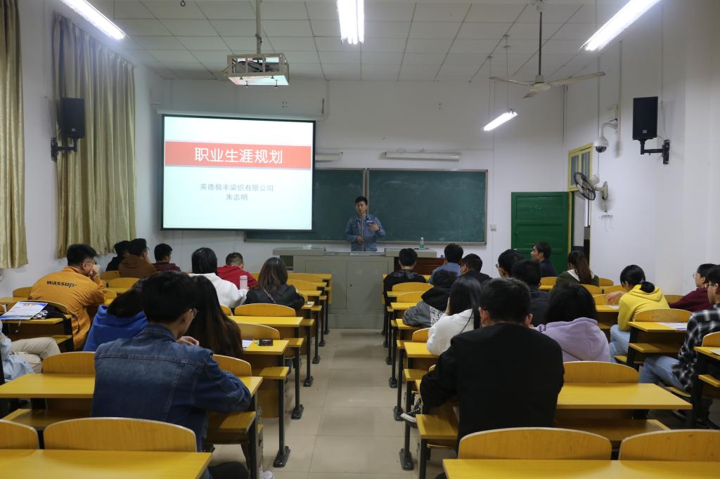 优秀校友英德极丰染织有限公司主管朱志明在红楼102举行了一场创新创业经验分享会,轻化工程专业老师及学生20余人参加。